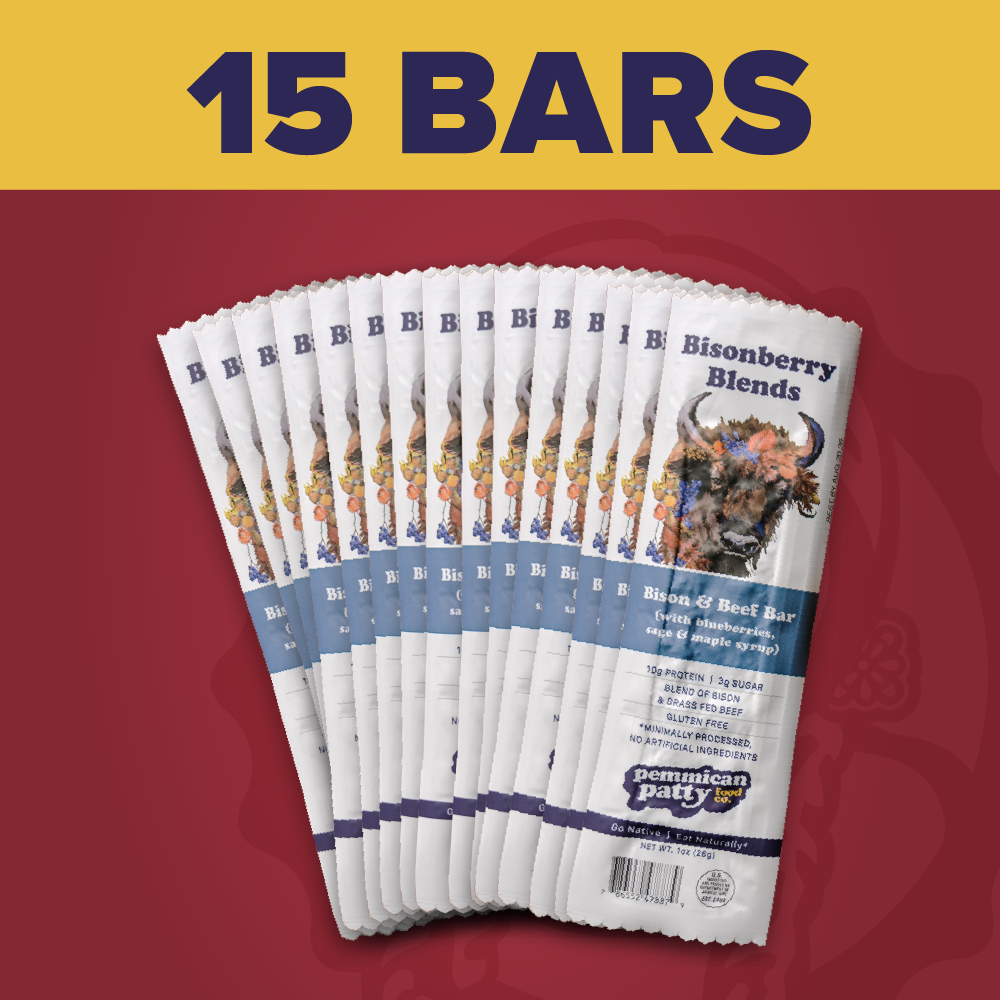 INGREDIENTS: BISON, GRASS-FED BEEF, DRIED BLUEBERRIES, MAPLE SYRUP, CONTAINS LESS THAN 2% OF: MAPLE WATER. SEA SALT, ORGANIC BLACK PEPPER, ORGANIC CAYENNE, CHERRY JUICE POWDER (CONTAINS ORGANIC CANE SUGAR), STARTER CULTURE, ORGANIC SAGE.